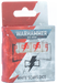 This is a set of 16 six-sided dice with squared edges for use in games of Warhammer 40,000, themed around the White Scars. They are cast in pearlised white acrylic plastic with red ink markings, and measure 16mm along each edge. The 1-5 facings are traditionally pipped, and each '6' face is decorated with the lightning bolt icon of the White Scars.