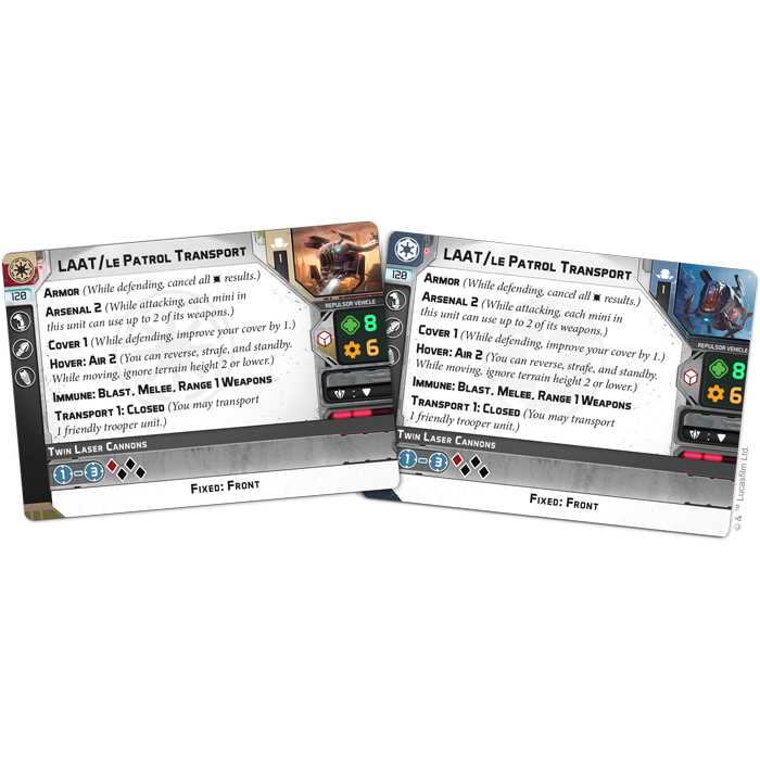 Scour the battlefield with this handy transport that can be used with Republic or Imperial armies! This beautifully detailed unpainted miniature comes with 12 upgrade cards.